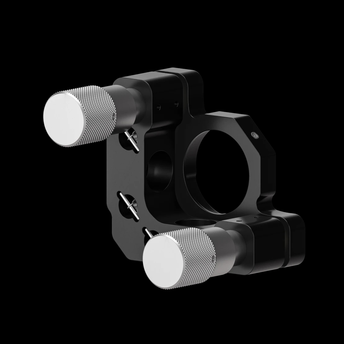 The 32KM kinematic mounts are designed to mount and adjust the optical elements from 1 to 6 inches in diameter. Model 32KM-1 is for optical elements with a diameter of 1 inch. The optical element is mounted on two rollers and securely fixed with a screw with a plastic tip. The mounts can be mounted on adapter plates, platforms and posts using M6 holes. The mounts allow installation with a 45° rotation around the optical axis. 32KM frames have coil springs.