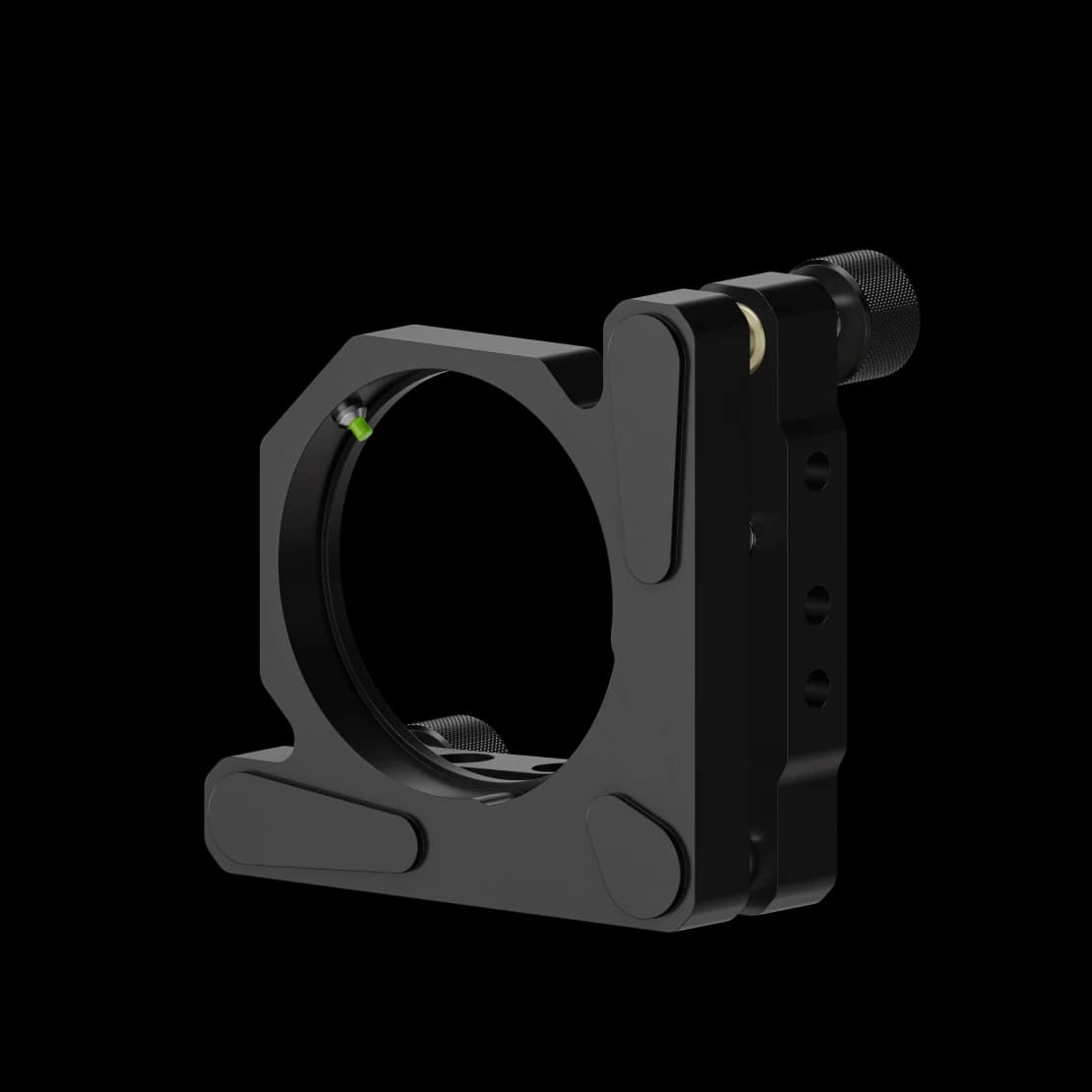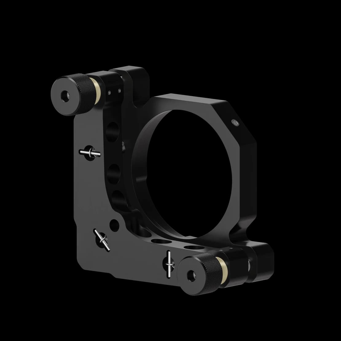 The kinematic mount 32KM-200TH is designed for mounting mirrors, beam splitting plates, and lenses. It has mounting holes for M4 screws and can be installed on brackets, adapter plates, platforms and rods. The optical elements are fixed with a screw with a plastic tip. The adjustment screws pitch is 0.25 mm.