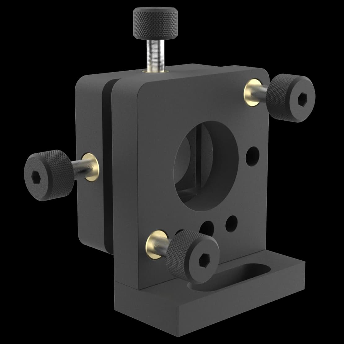 The mount with internal thread allows adjusting the optical elements in two angular and two longitudinal coordinates. The mount is fixed on the adapter plates using a 30 mm long slot for M6 screw.