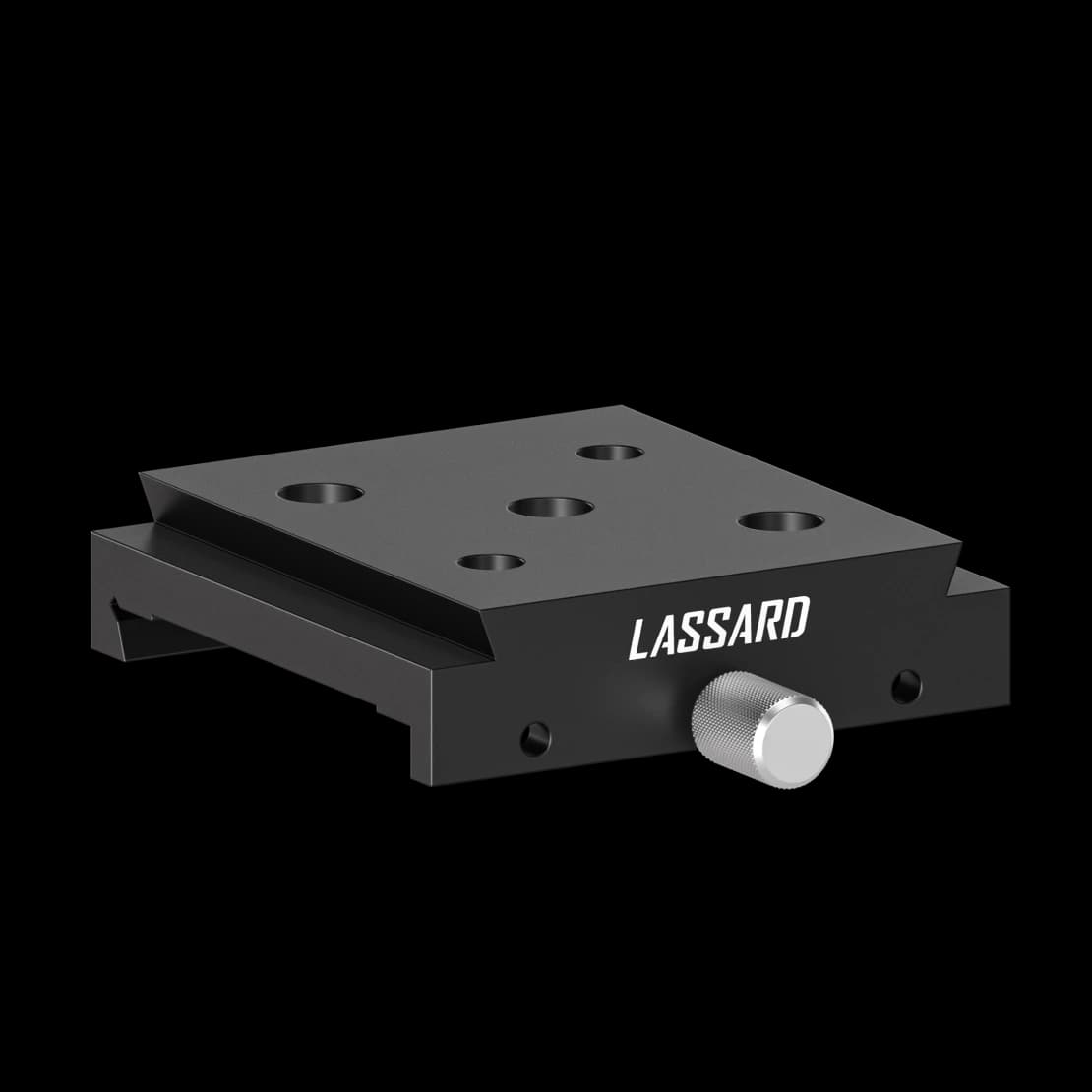 Carriages with a square platform of 50x50 mm with the dovetail mount allow assembling a two-axis assembly that provides rough adjustment along the X-Y axes. The carriage platform has two M6 threaded holes and three M6 screw holes. There are additional M3 threaded holes on the side of the fixing screw.