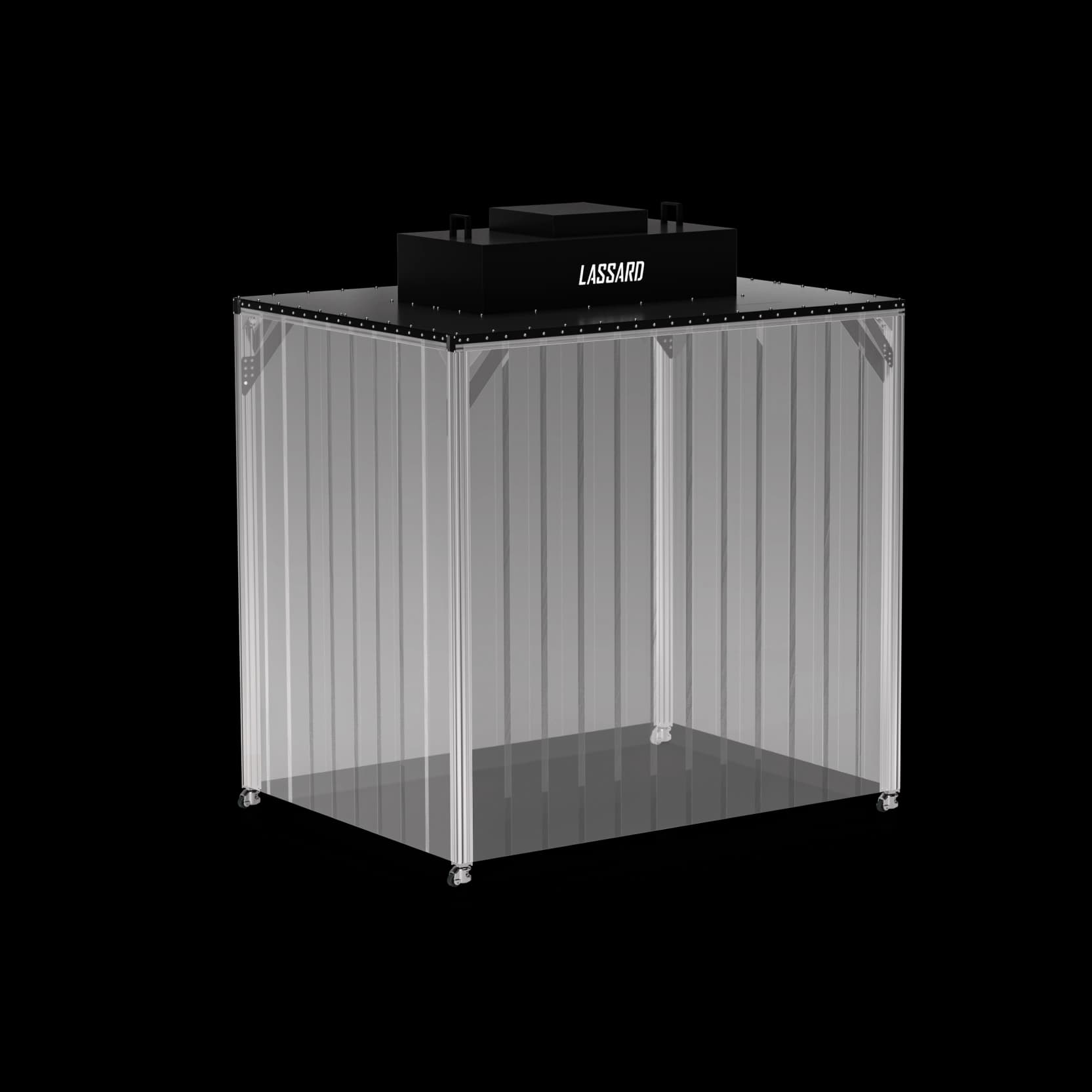 The laminar workstation is designed to protect the working area of the optical table from mechanical contamination. The filter and ventilation module creates excess pressure inside the station, due to which mechanical contamination is displaced by the purified air flow outside it.