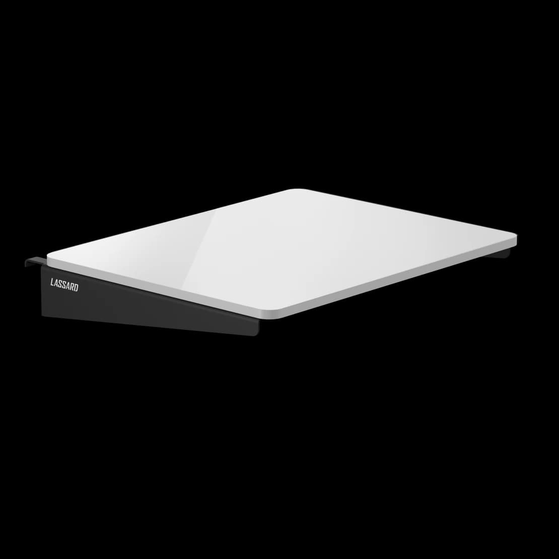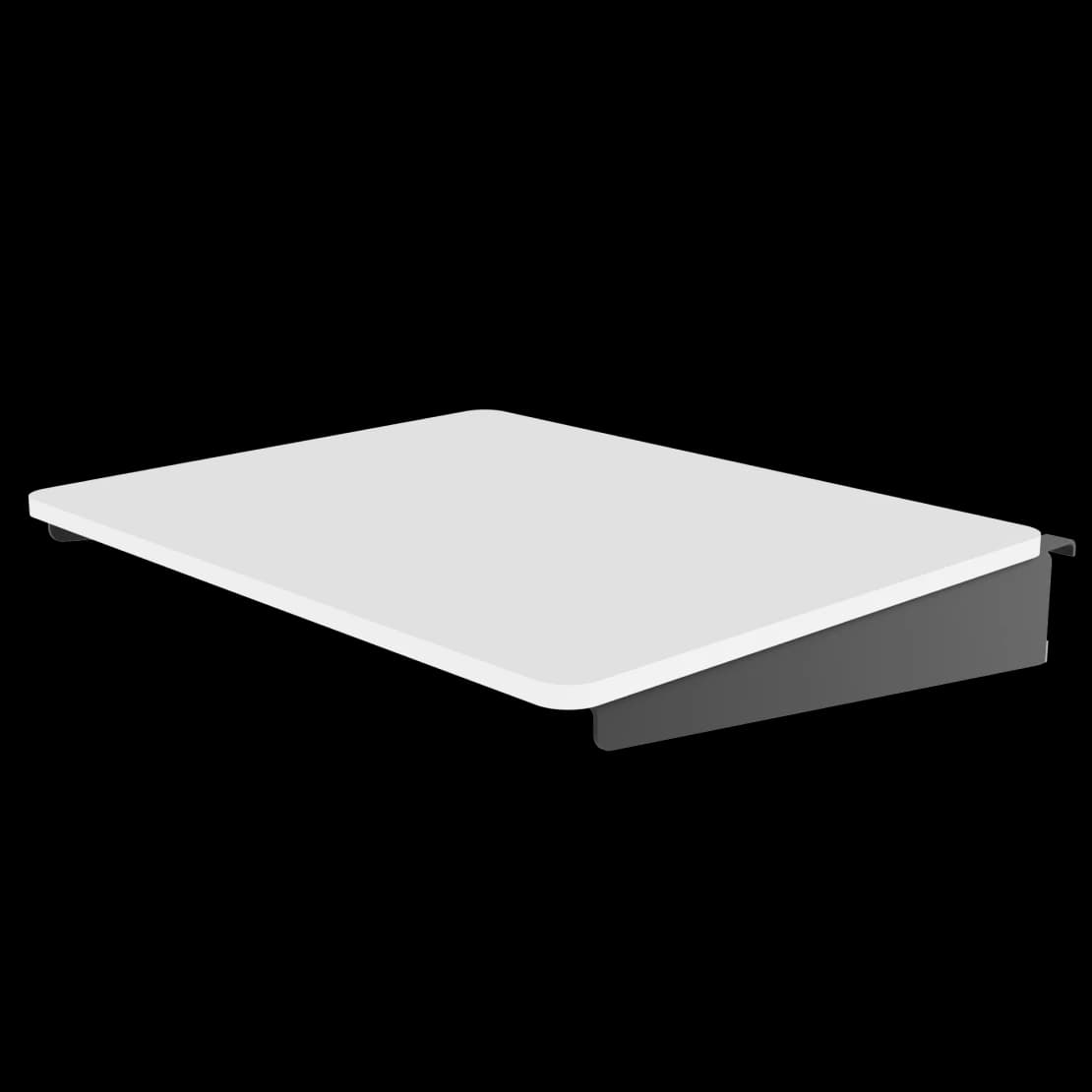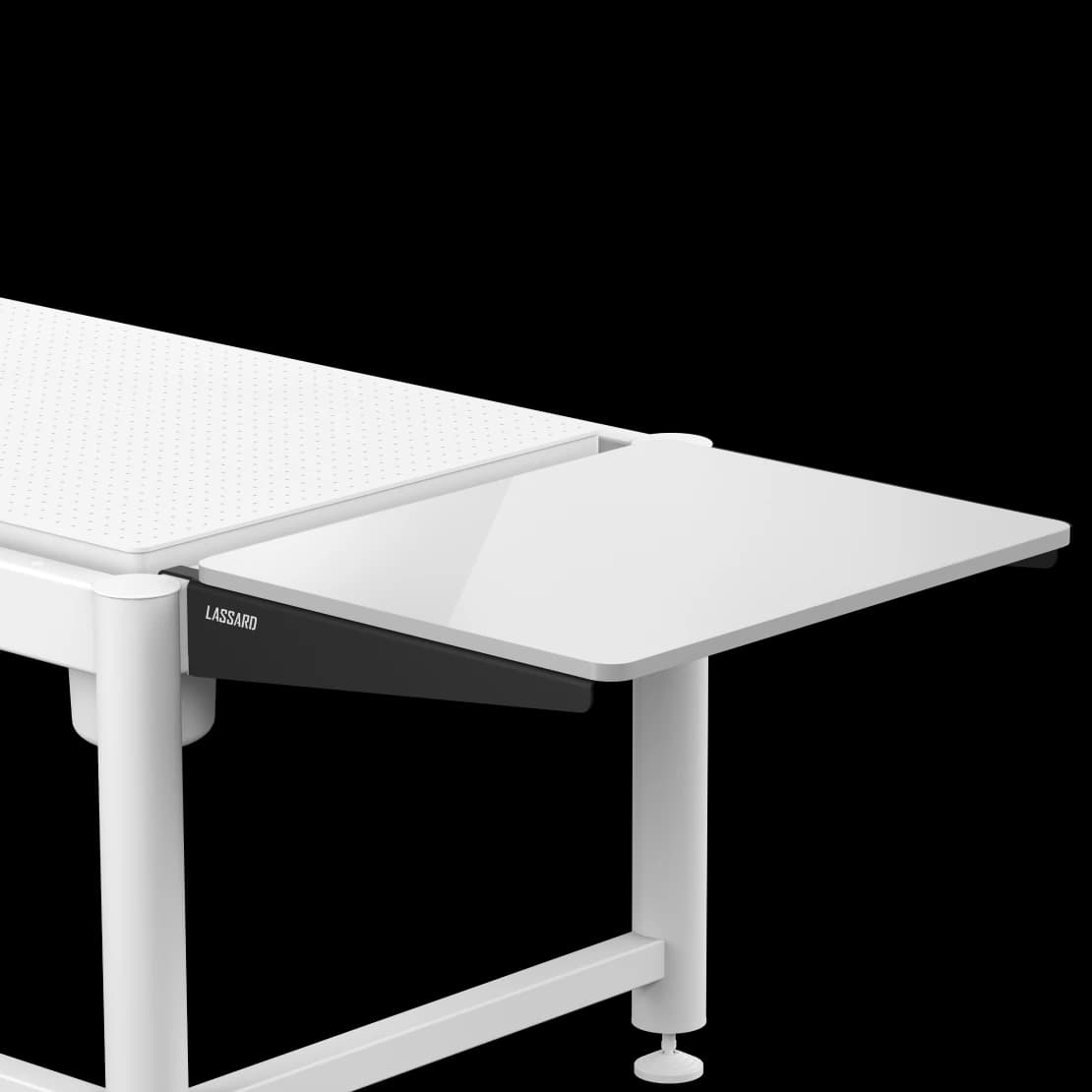 The shelf that can be fastened to the side guides of the optical table support is designed to place equipment at the level of the optical table top.