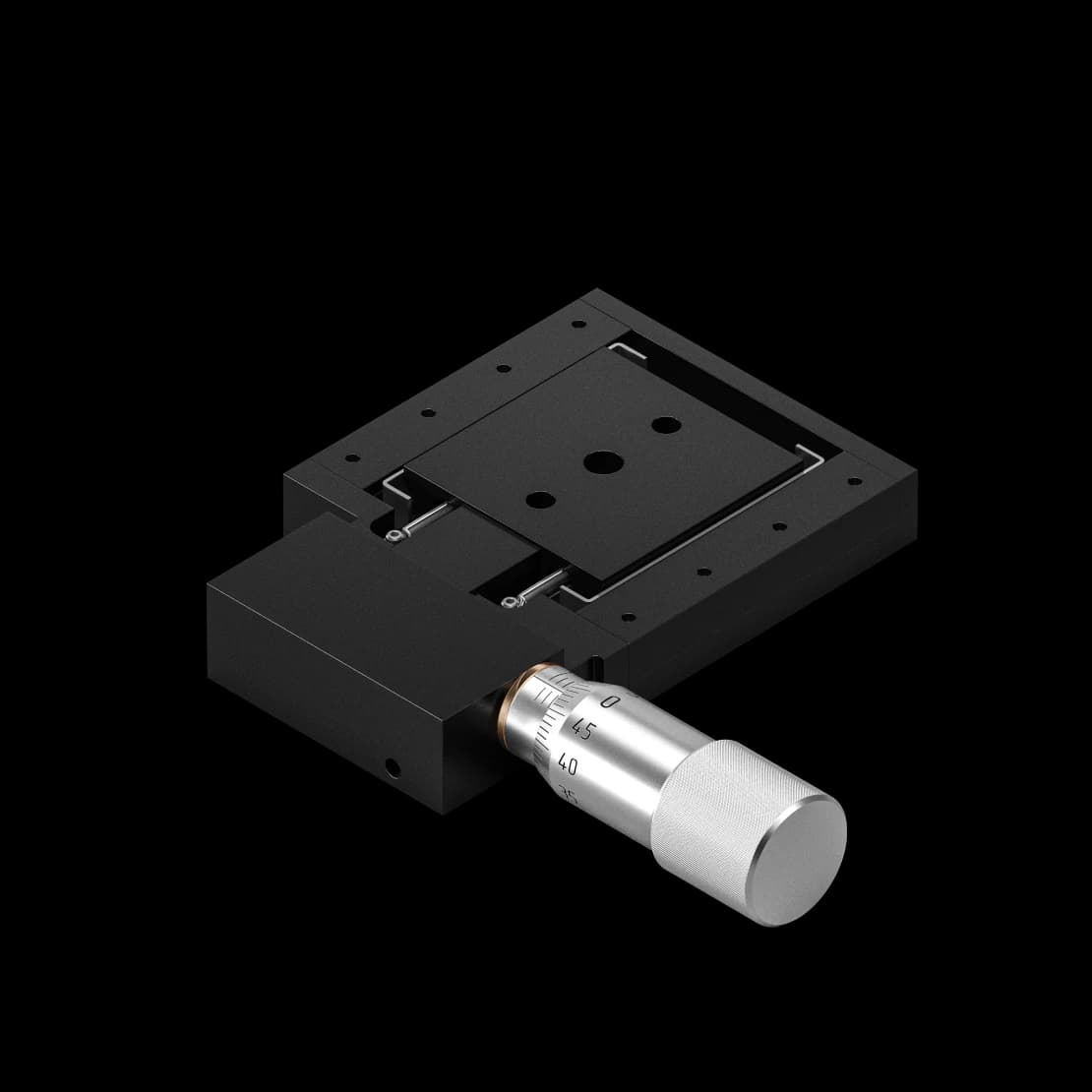 Linear motion translation stages with a square platform of 50x50x13 mm can be used to create two- and three-axis positioning (movement) systems. They have three M4 threaded holes and three M6 threaded holes, used for mounting on various brackets, adapter plates, platforms, and rods.