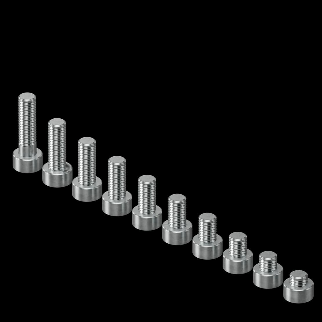 В размерном ряду 24SSM представлены винты M3, M4 и M6 с цилиндрической головкой длиной 3/4/6 мм с диаметром 5.5/7/10 мм и углублением под шестигранный ключ 2.5/4/5 мм. Длина резьбы составляет от 4 до 20 мм (для М6 — до 25 мм).