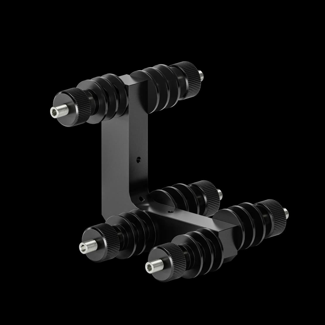 Держатель позволяет закрепить до 6 фильтров или пластин толщиной от 2 до 6 мм. Для монтажа держателя на стержнях (в том числе с разворотом на 45 градусов) предусмотрены резьбовые отверстия М6.