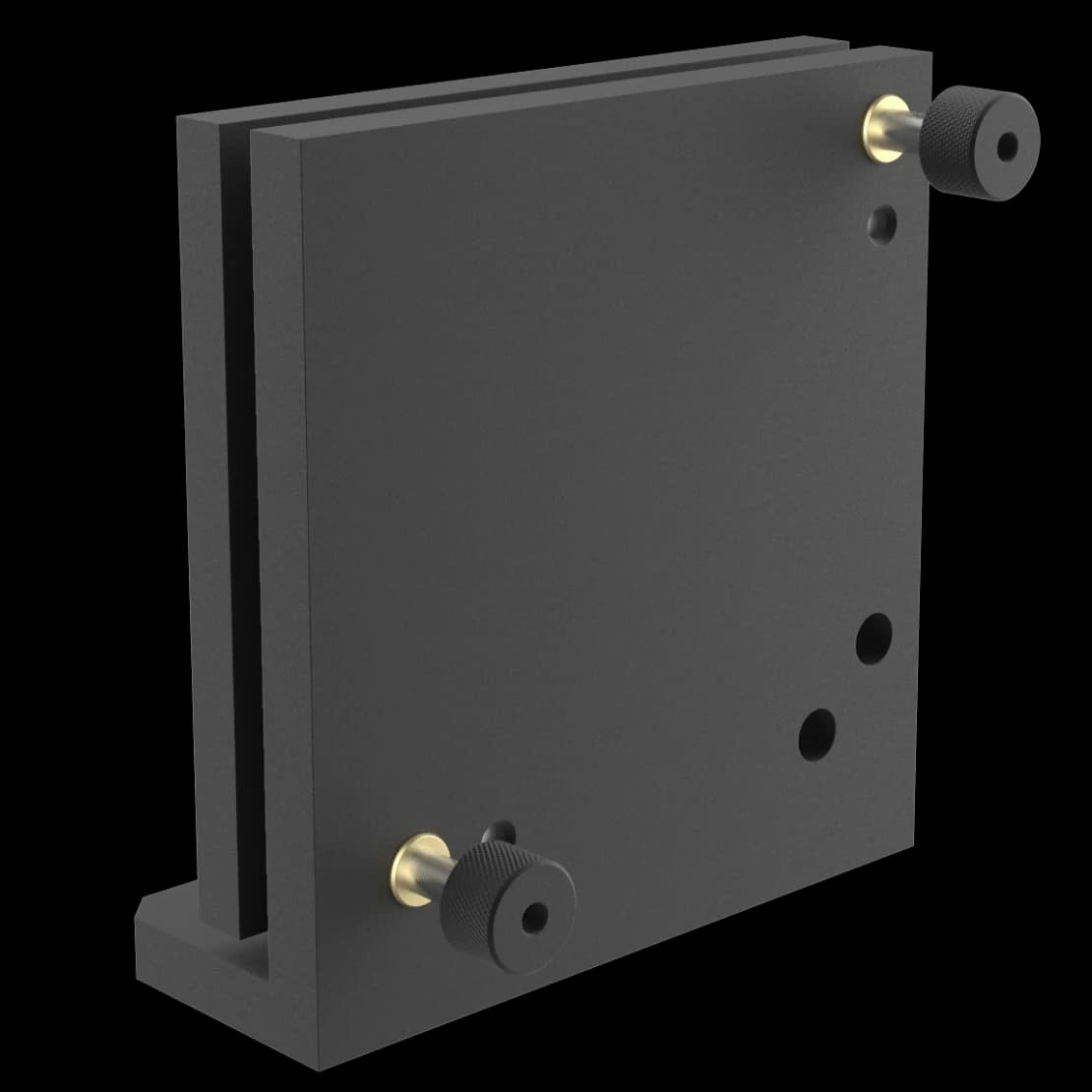 Крепление предназначено для монтажа зеркал и юстировки по двум угловым координатам. Для установки крепления на поверхность оптических столов, плиты и платформы в его основании предусмотрены две прорези под винт М6. В данной модели используется плоская пружина.