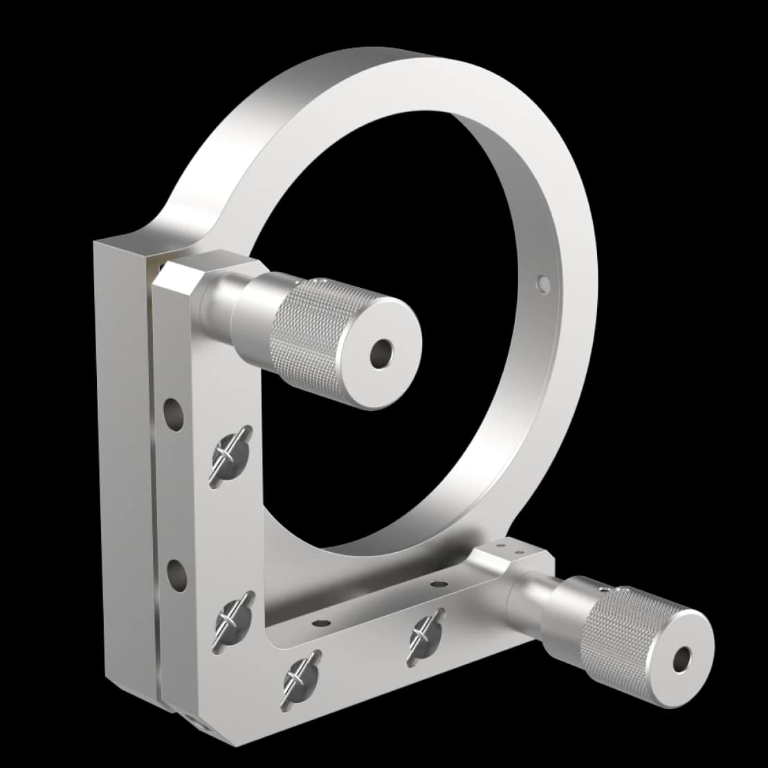 Юстируемая оправа из нержавеющей стали предназначена для крепления зеркал, светоделительных пластин и линз диаметром 3 дюйма. Оправа имеет резьбовые отверстия М6 и может устанавливаться на кронштейны, переходные пластины, платформы и стержни. Допускает установку с разворотом на 45°.