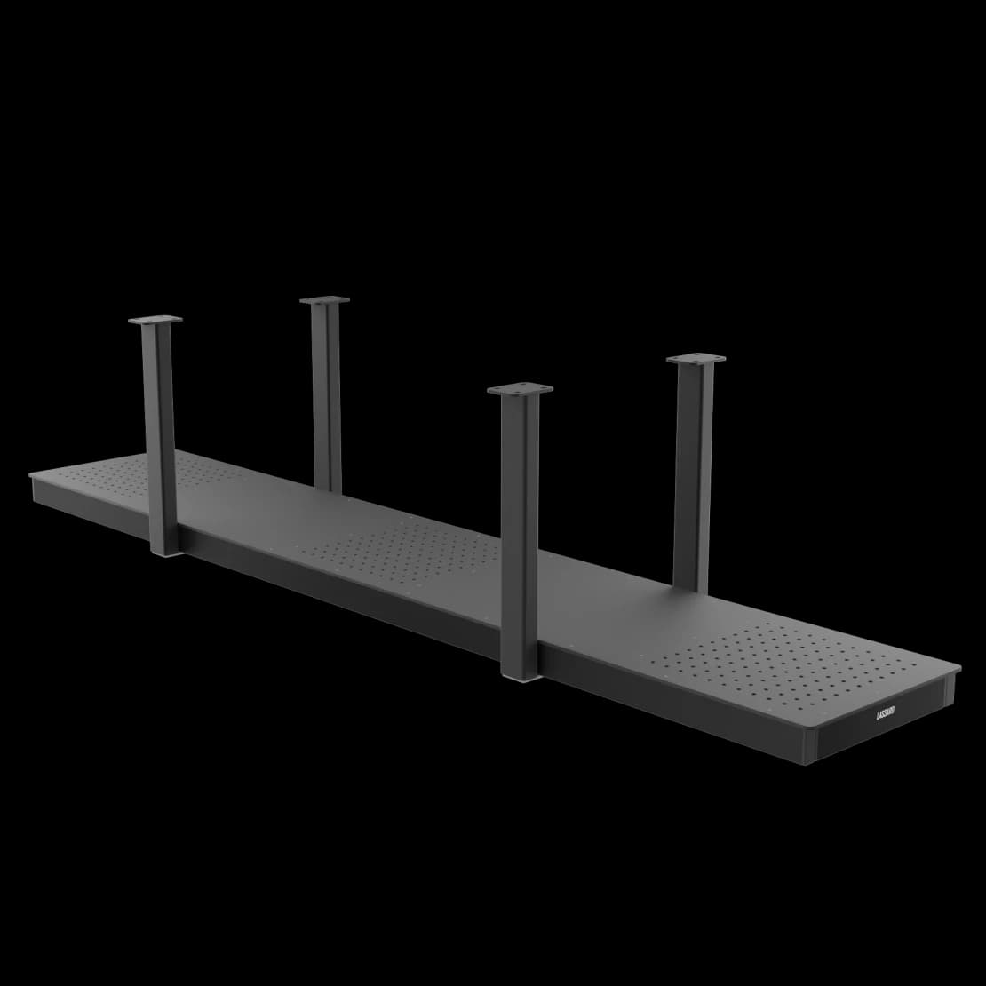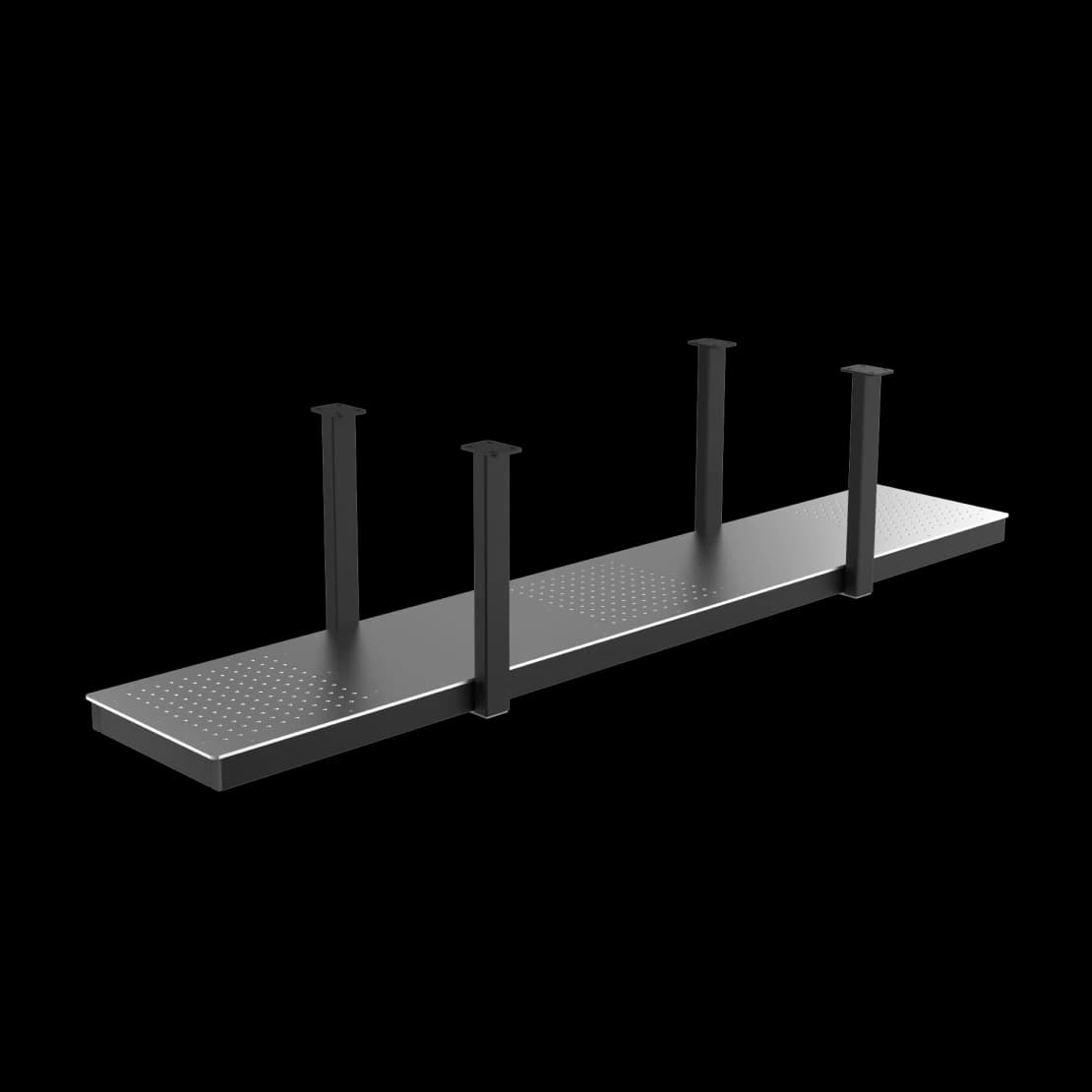 Полка предназначена для размещения лазерных источников излучения и экономит место на поверхности оптического стола. Полка крепится винтами M6 непосредственно к нижней части столешницы и связана с ней механически.В плите полки выполнена сетка сквозных отверстий M6. Расположение крепежных отверстий может быть стандартным или по требованию заказчика.