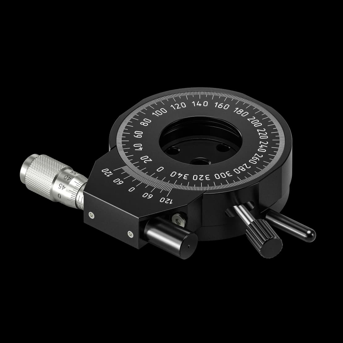 Неюстируемая поворотная оправа с микрометрическим винтом предназначена для оптических элементов (поляризаторов) диаметром 25.4 мм. Она обеспечивает регулировку положения вокруг оптической оси на 360° с возможностью тонкой подстройки в пределах 10° с точностью до 1 угловой минуты. В комплекте одно стопорное кольцо. Модель 32PHP1-01 комплектуется съемной центральной секцией. Оправа может быть установлена на стержни и платформы с помощью резьбовых отверстий М6.